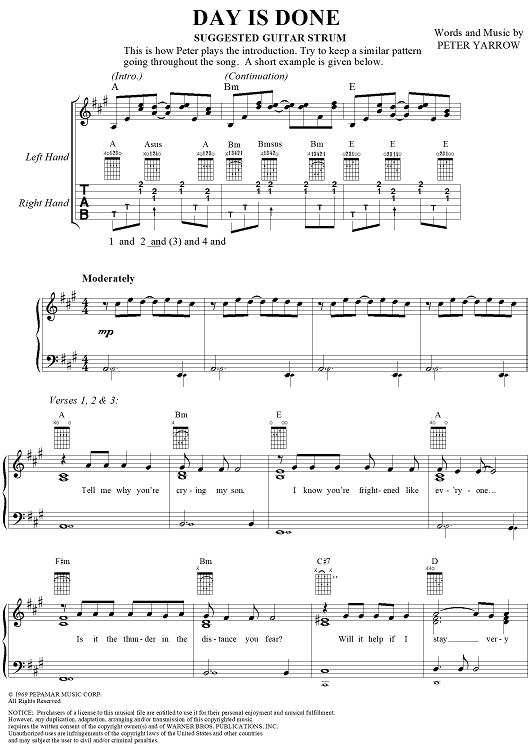 "Day Is Done" Sheet Music by Peter, Paul and Mary