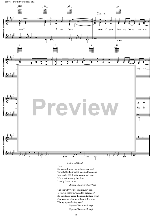 Digital Sheet Music for Day Is Done by Peter Yarrow, Peter, Paul and Mary scored for Piano/Vocal/Chords; id:124169