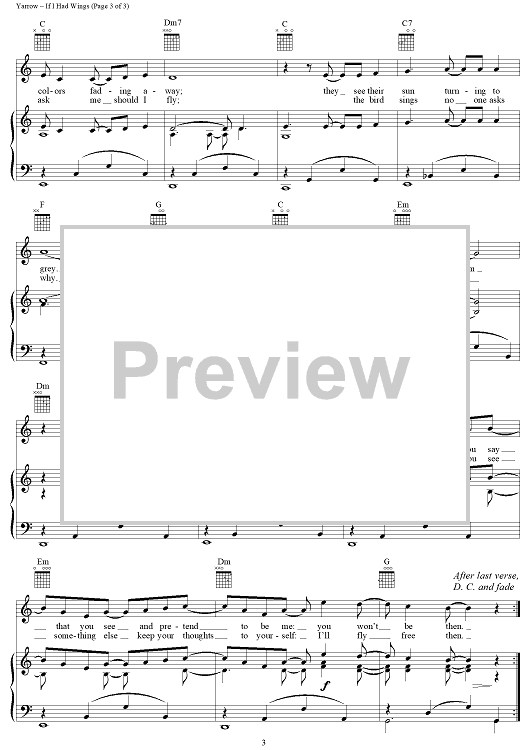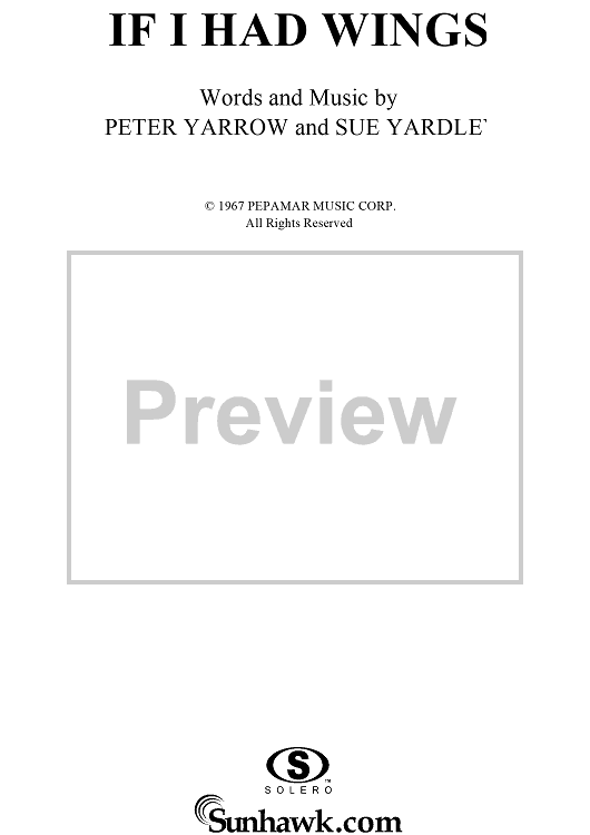 Digital Sheet Music for If I Had Wings by Peter Yarrow, Sue Yardley, Peter, Paul and Mary scored for Piano/Vocal/Chords; id:263164