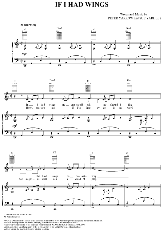 "If I Had Wings" Sheet Music by Peter, Paul and Mary