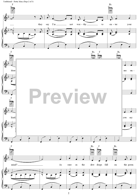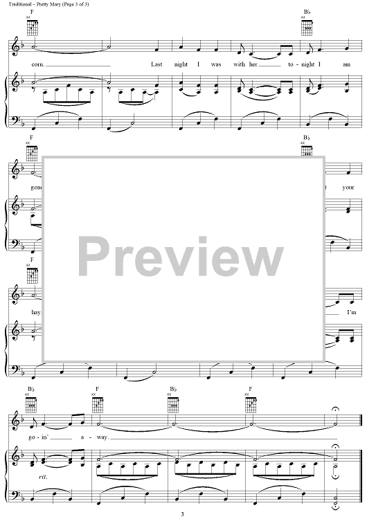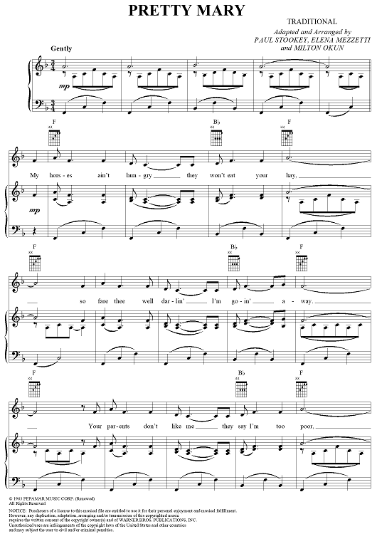 Digital Sheet Music for Pretty Mary by Paul Stookey, Milton Okun, Elena Mezzetti, Peter, Paul and Mary, Traditional scored for Piano/Vocal/Chords; id:225173
