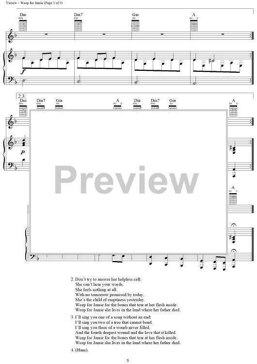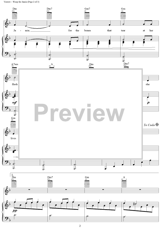 Digital Sheet Music for Weep for Jamie by Peter Yarrow, Peter, Paul and Mary scored for Piano/Vocal/Chords; id:225174