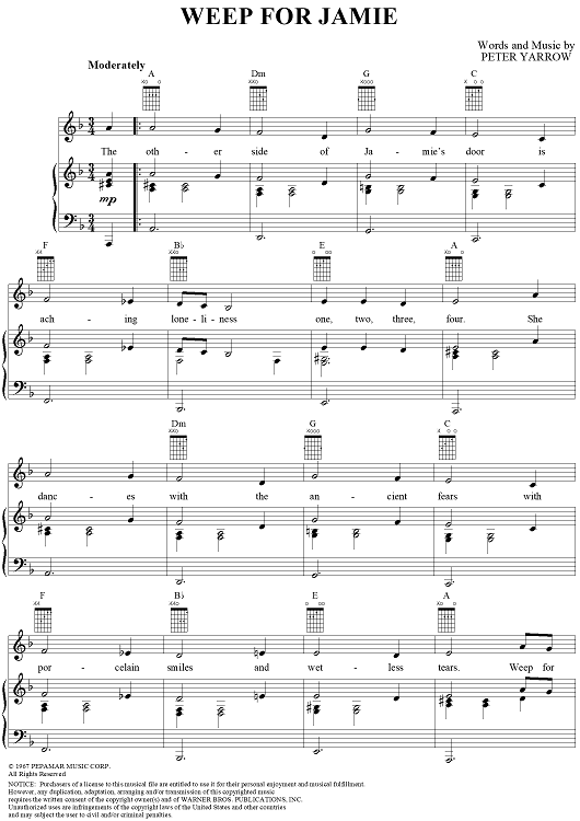 "Weep for Jamie" Sheet Music by Peter, Paul and Mary