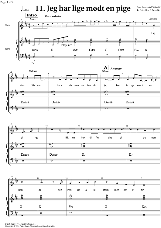 Digital Sheet Music for Atlantis - 11. Jeg har lige moedt en pige by , Thomas Hoeg, Peter Spies, Sune Svanekier scored for Voice/Piano; id:344114