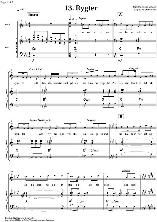 Digital Sheet Music for Atlantis - 13. Rygter by Thomas Hoeg, Peter Spies, Sune Svanekier scored for Voice/Piano; id:344116