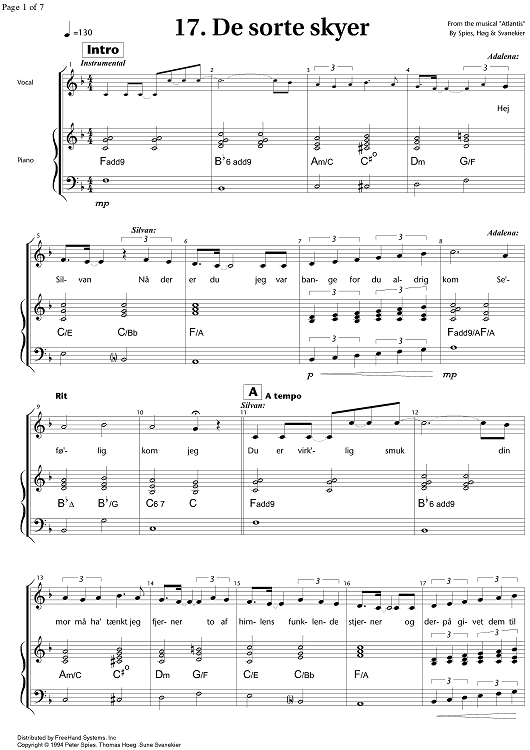 Digital Sheet Music for Atlantis - 17. De sorte skyer by , Thomas Hoeg, Peter Spies, Sune Svanekier scored for Voice/Piano; id:344120
