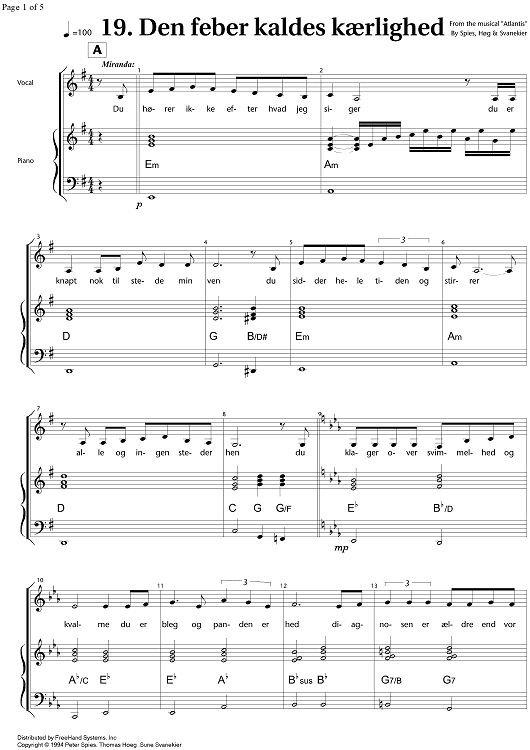 Digital Sheet Music for Atlantis - 19. Den feber kaldes kaerlighed by , Thomas Hoeg, Peter Spies, Sune Svanekier scored for Voice/Piano; id:344122