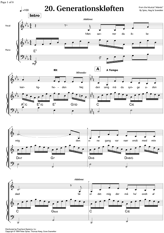 Digital Sheet Music for Atlantis - 20. Generationskloeften by , Thomas Hoeg, Peter Spies, Sune Svanekier scored for Voice/Piano; id:344123