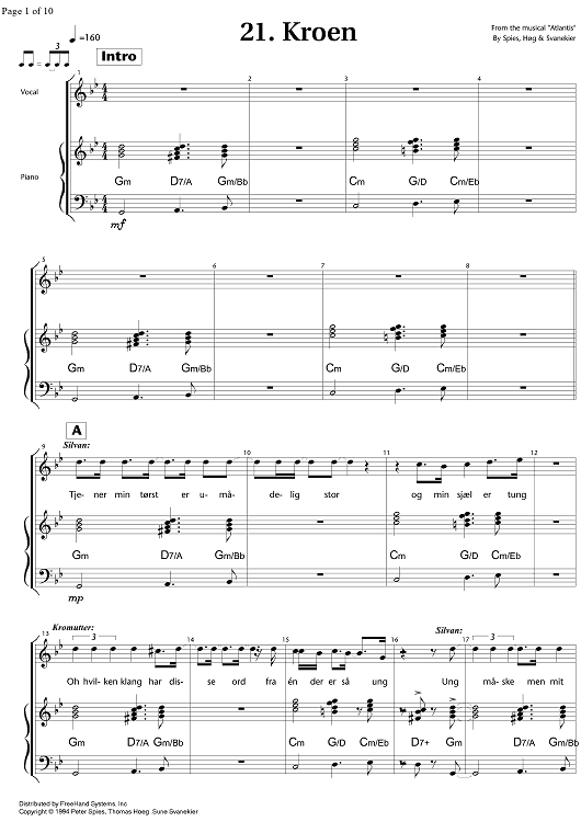 Digital Sheet Music for Atlantis - 21. Kroen by , Thomas Hoeg, Peter Spies, Sune Svanekier scored for Voice/Piano; id:344124