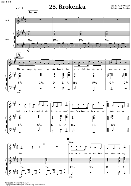 Digital Sheet Music for Atlantis - 25. Rrokenka by , Thomas Hoeg, Peter Spies, Sune Svanekier scored for Voice/Piano; id:344128