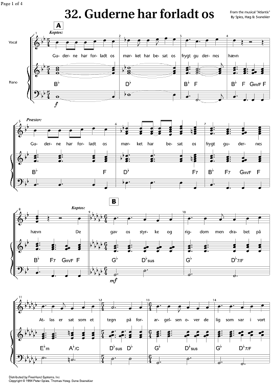 "Atlantis - 32. Guderne har forladt os" Sheet Music by Thomas Hoeg