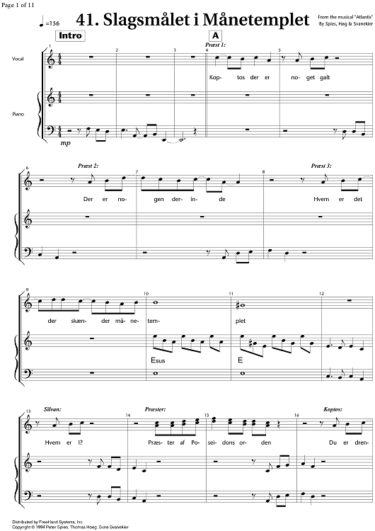 Digital Sheet Music for Atlantis - 41. Slagsmaalet i Maanetemplet by , Thomas Hoeg, Peter Spies, Sune Svanekier scored for Voice/Piano; id:344144