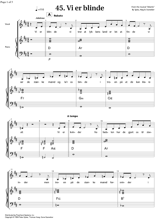 Digital Sheet Music for Atlantis - 45. Vi er blinde by , Thomas Hoeg, Peter Spies, Sune Svanekier scored for Voice/Piano; id:344148