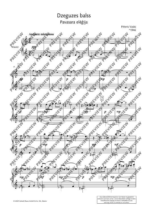 "Dzeguzes balss (Cuckoo‘s Call)" Sheet Music by Peteris Vasks