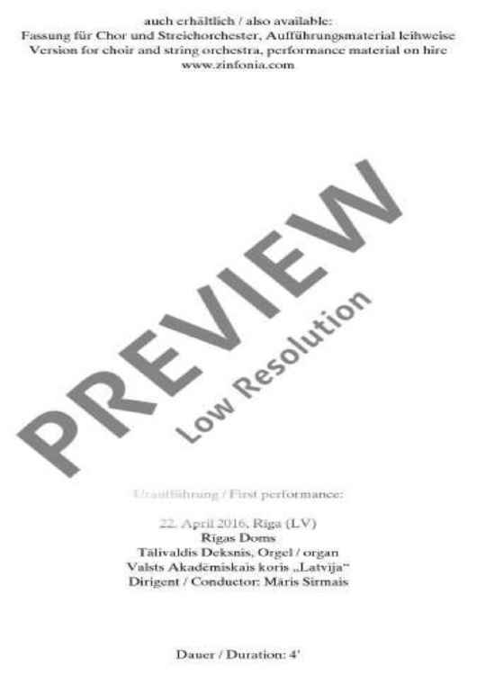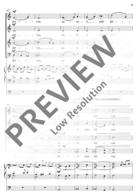 The effective choral setting is based on texts by the Latvian national poet Velta Toma whose works are characterized by her having lived in exile in Canada for decades. At the heart of her Latvian Prayer, too, is the yearning for love, family ties and a certain melancholy patriotism. The full symphonic sound of the catchy choral piece is not only due to the organ accompaniment, but also to the division into eight voice groupings.