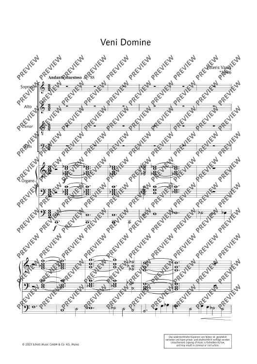 Digital Sheet Music for Veni Domine - Performing Score by Peteris Vasks scored for Mixed Choir (satb) And Organ; id:500342