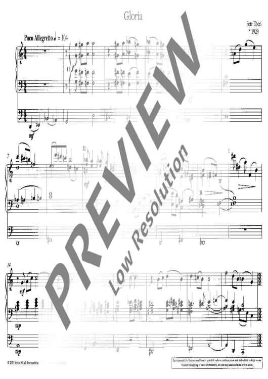 Eben (b.1929) is one of the most important composers of organ music of the 20th century. The present work is based on the Gregorian Gloria chant and is eminently suitable for liturgical purposes. ‘Gloria’ was written for the 65th birthday of the dedicatee.
