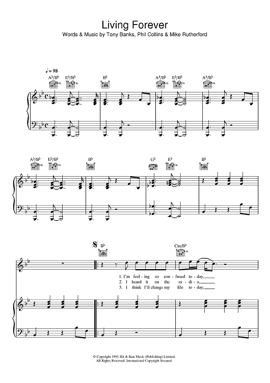 Digital Sheet Music for Living Forever by Genesis, Mike Rutherford, Tony Banks, Phil Collins scored for Piano/Vocal/Chords; id:410884