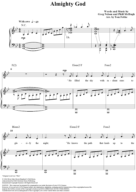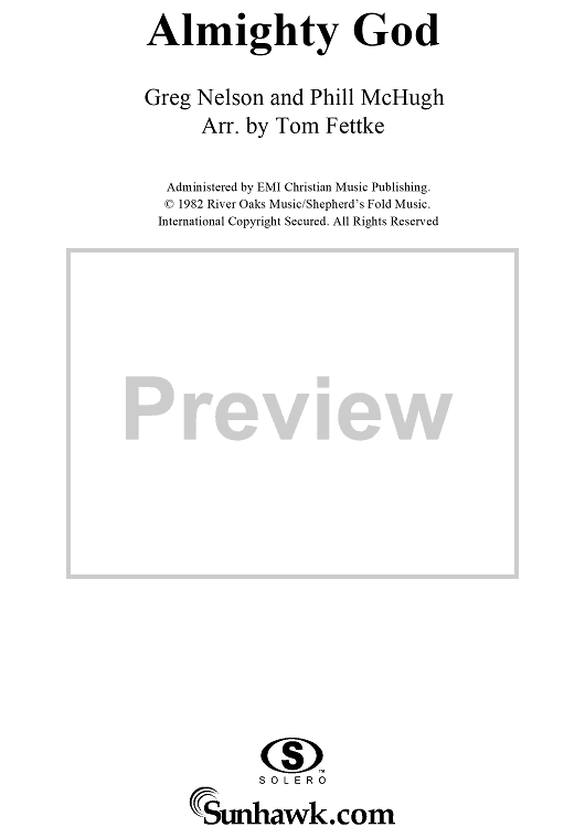 Digital Sheet Music for Almighty God by Greg Nelson, Phill McHugh, Tom Fettke, Sandi Patty scored for Piano/Vocal/Chords; id:115978