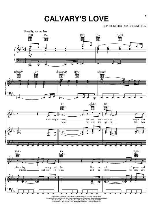 Digital Sheet Music for Calvary's Love by Greg Nelson, Phill McHugh, Larry Hagan scored for Piano/Vocal/Chords; id:386455
