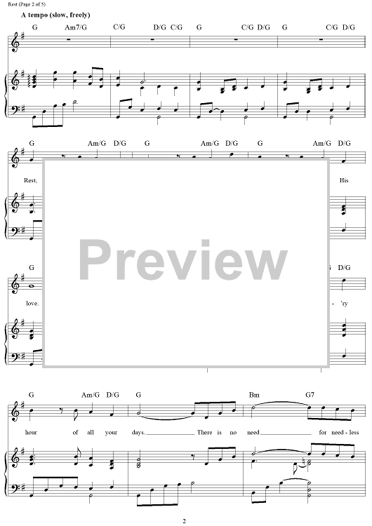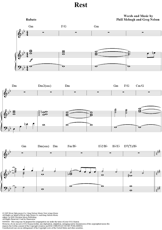 Digital Sheet Music for Rest by Steve Green, Greg Nelson, Phill McHugh scored for Piano/Vocal/Chords; id:112712