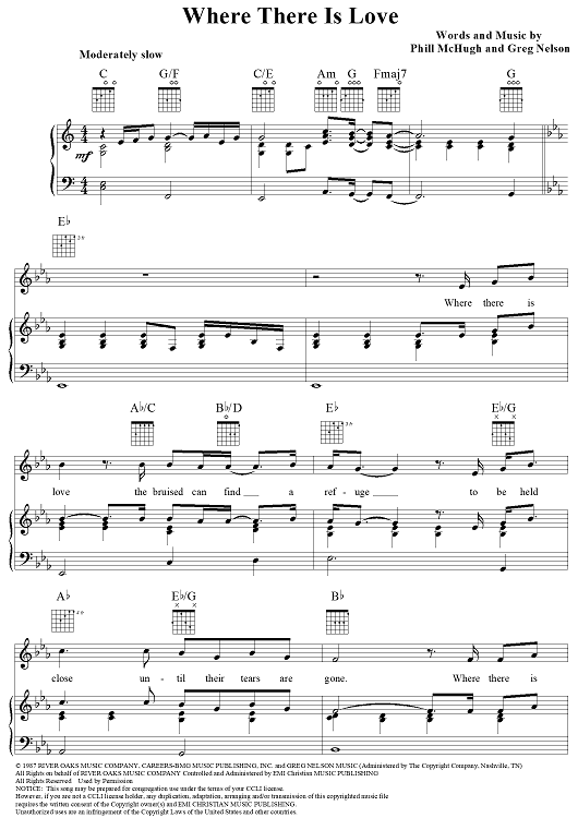 Digital Sheet Music for Where There Is Love by Greg Nelson, Phill McHugh scored for Piano/Vocal/Chords; id:112719