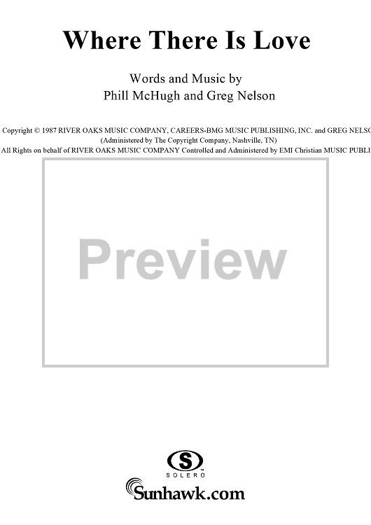 "Where There Is Love" Sheet Music by Greg Nelson