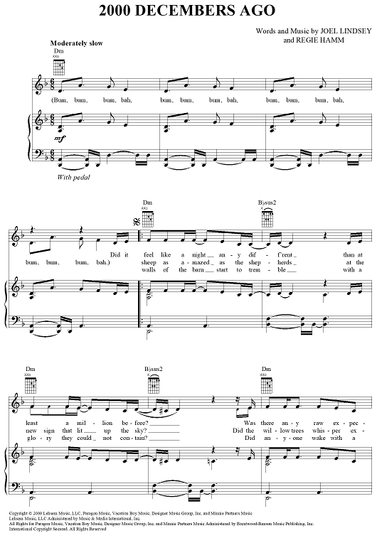 Digital Sheet Music for 2000 Decembers Ago by Regie Hamm, Joel Lindsey, Joy Williams scored for Piano/Vocal/Chords; id:366830