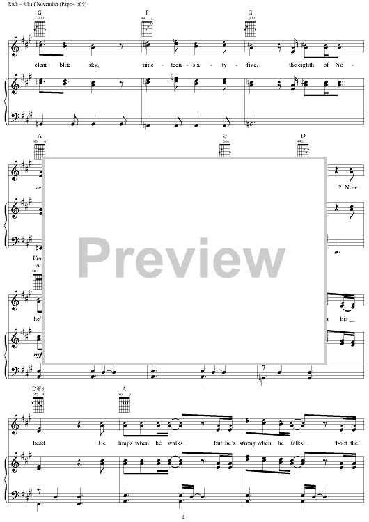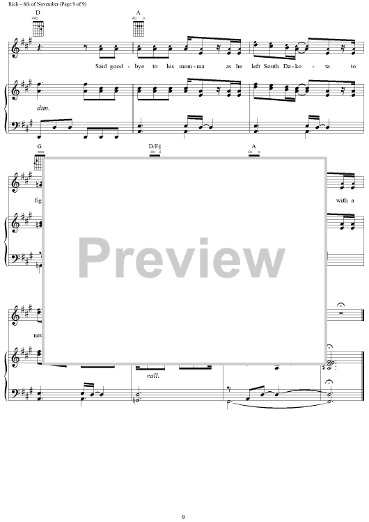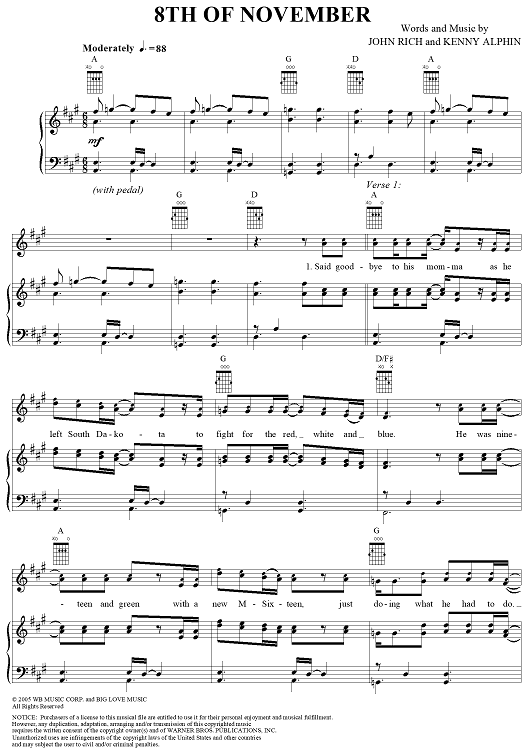 Digital Sheet Music for 8th of November by John Rich, Kenny Alphin, Big & Rich scored for Piano/Vocal/Chords; id:355018