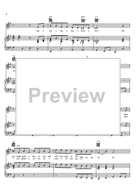 "A Big Hunk O' Love" Sheet Music by Elvis Presley