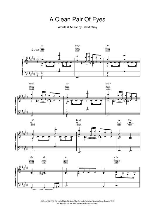 Digital Sheet Music for A Clean Pair Of Eyes by David Gray scored for Piano/Vocal/Chords; id:380028