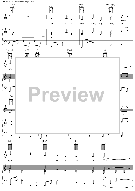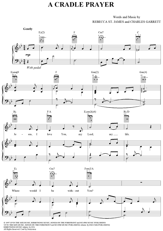 Digital Sheet Music for A Cradle Prayer by Rebecca St. James, Charles Garrett scored for Piano/Vocal/Chords; id:367239