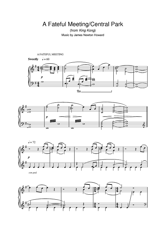 Digital Sheet Music for A Fateful Meeting/Central Park by James Newton Howard scored for Piano; id:395554