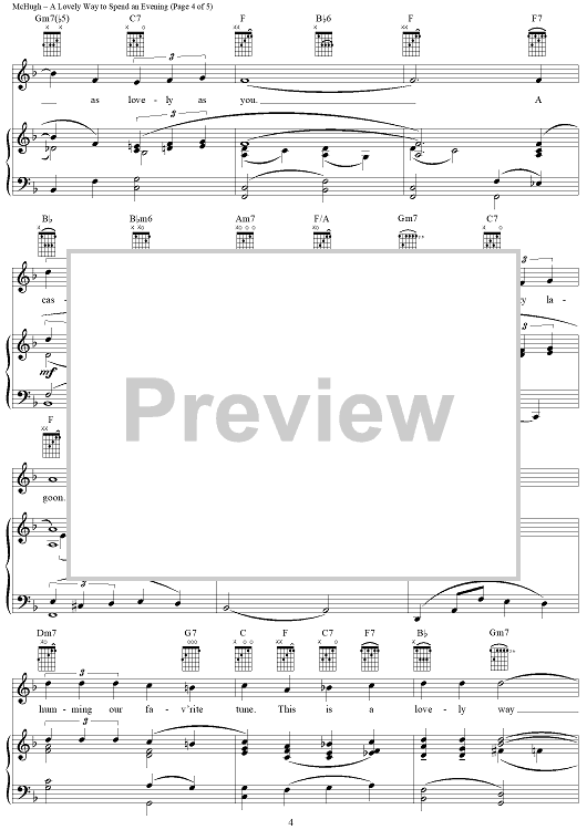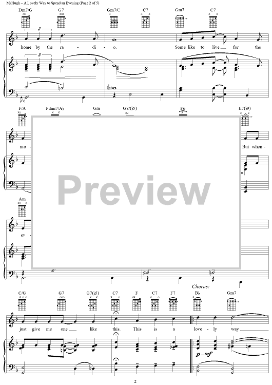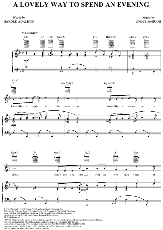 Digital Sheet Music for A Lovely Way to Spend an Evening by Jimmy McHugh, Harold Adamson scored for Piano/Vocal/Chords; id:288065