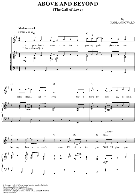 Digital Sheet Music for Above and Beyond (The Call of Love) by Harlan Howard, Buck Owens scored for Piano/Vocal/Chords; id:362729
