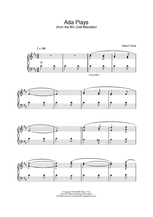 Digital Sheet Music for Ada Plays by Gabriel Yared scored for Piano; id:382973