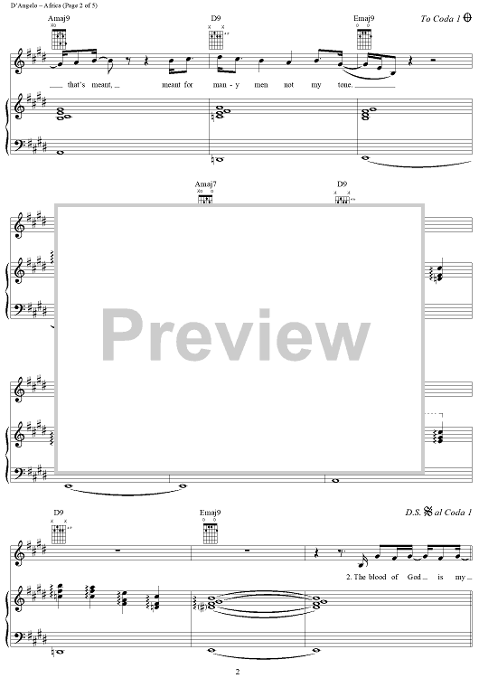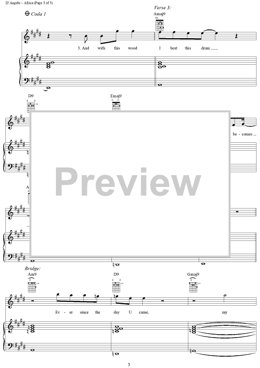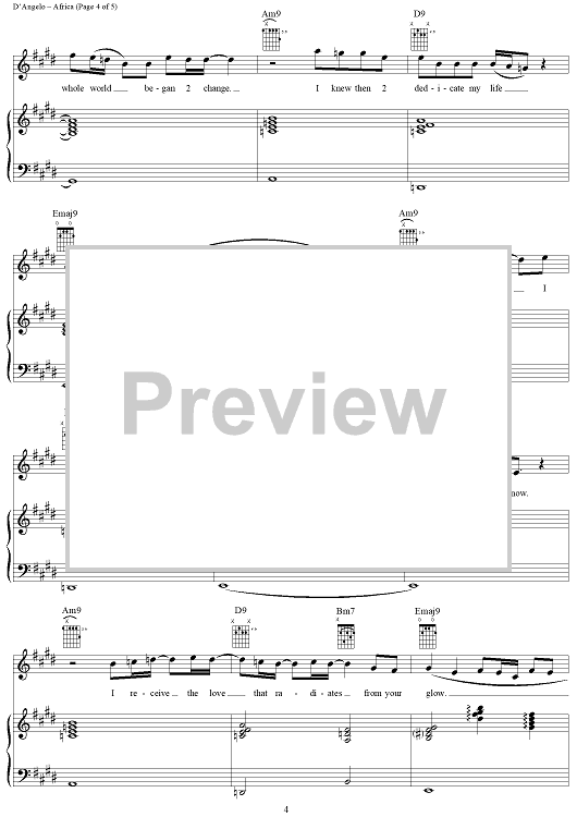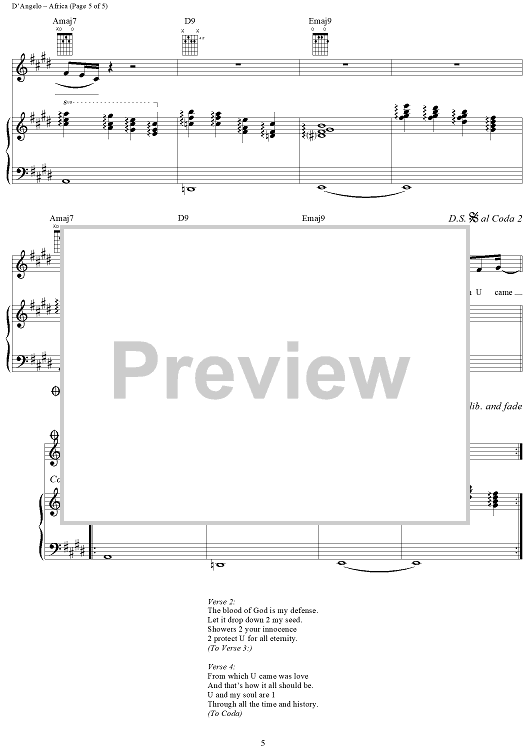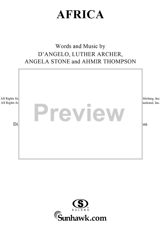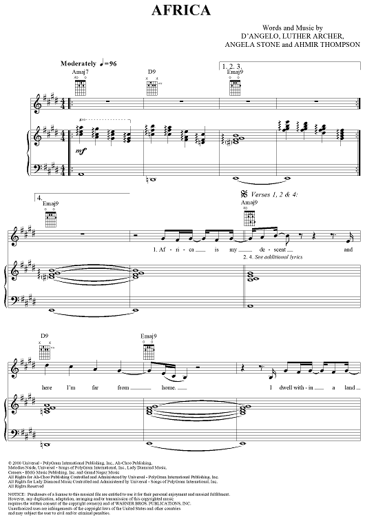 Digital Sheet Music for Africa by D'Angelo, Angela Stone, Ahmir Thompson, Luther Archer scored for Piano/Vocal/Chords; id:289508