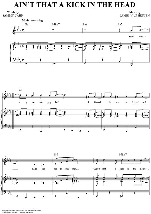 Digital Sheet Music for Ain't That A Kick In The Head by Sammy Cahn, Jimmy Van Heusen, Dean Martin scored for Piano/Vocal/Chords; id:386174