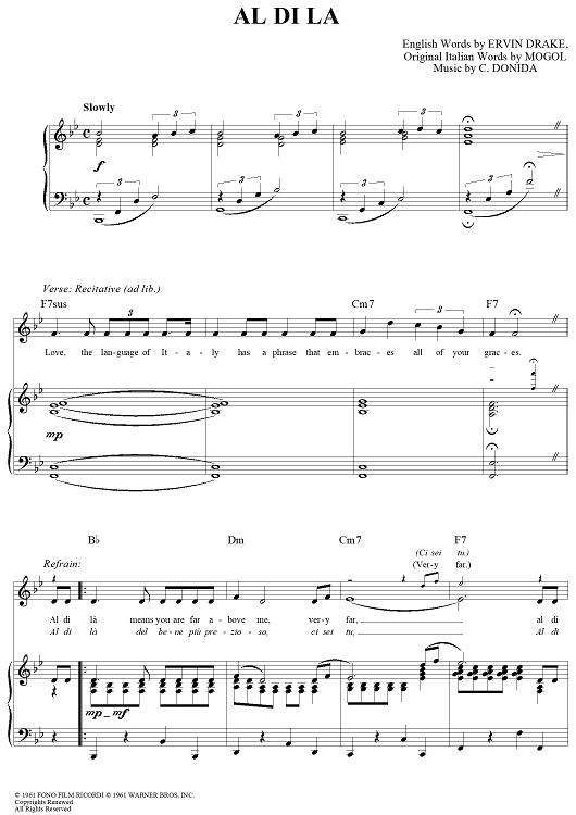Digital Sheet Music for Al Di La by Carlo Donida, Mogol scored for Piano/Vocal/Chords; id:289382