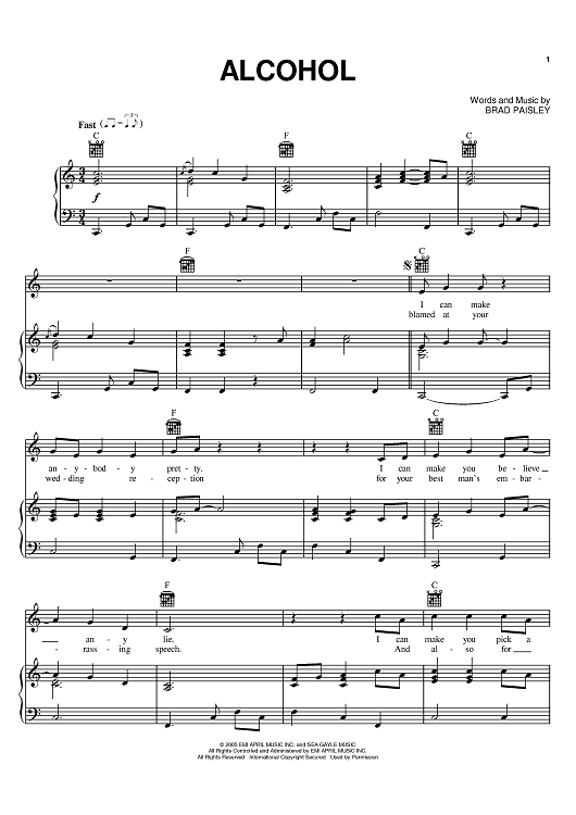 Digital Sheet Music for Alcohol by Brad Paisley scored for Piano/Vocal/Chords; id:385108