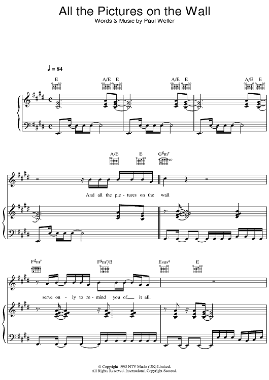 "All The Pictures On The Wall" Sheet Music by Paul Weller