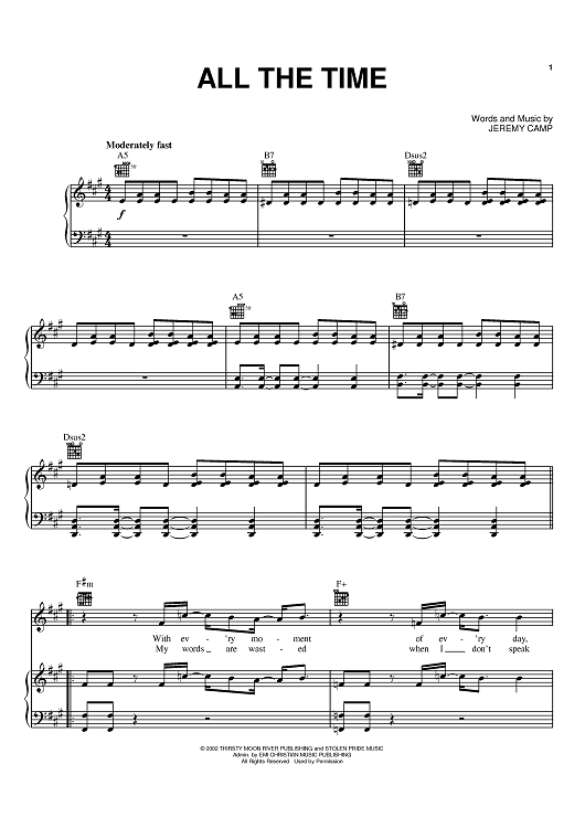 Digital Sheet Music for All The Time by Jeremy Camp scored for Piano/Vocal/Chords; id:373218