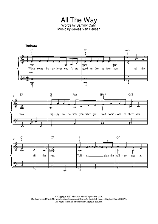 Digital Sheet Music for All The Way by Sammy Cahn scored for Piano; id:378930