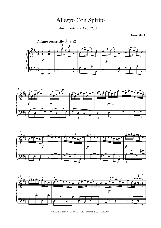 "Allegro Con Spirito Op12 No1" Sheet Music by J Hook