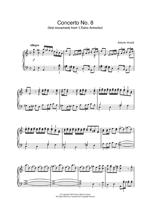 "Allegro) from 'L'Estro Armonico' Op.3" Sheet Music by Antonio Vivaldi