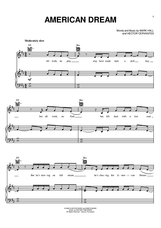Digital Sheet Music for American Dream by Mark Hall, Casting Crowns, Hector Cervantes scored for Piano/Vocal/Chords; id:374822
