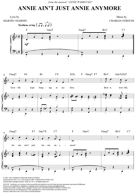 "Annie Ain't Just Annie Anymore" Sheet Music by Charles Strouse