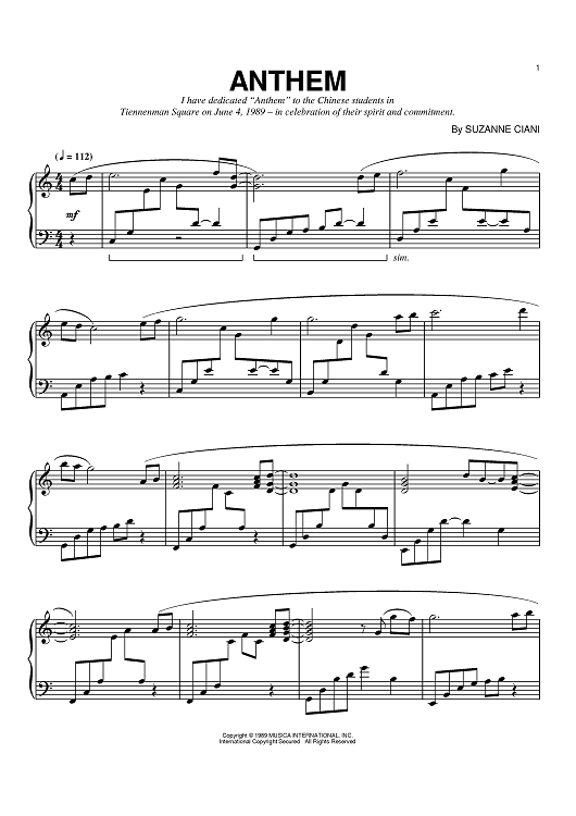 "Anthem" Sheet Music by Suzanne Ciani