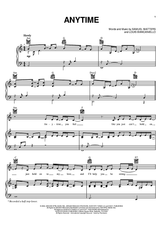 Digital Sheet Music for Anytime by Louis Biancaniello, Samuel Watters, Kelly Clarkson scored for Piano/Vocal/Chords; id:385915