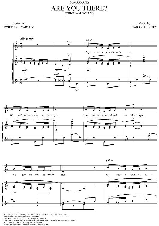 Digital Sheet Music for Are You There by Harry Tierney, Joseph McCarthy scored for Piano/Vocal; id:419195